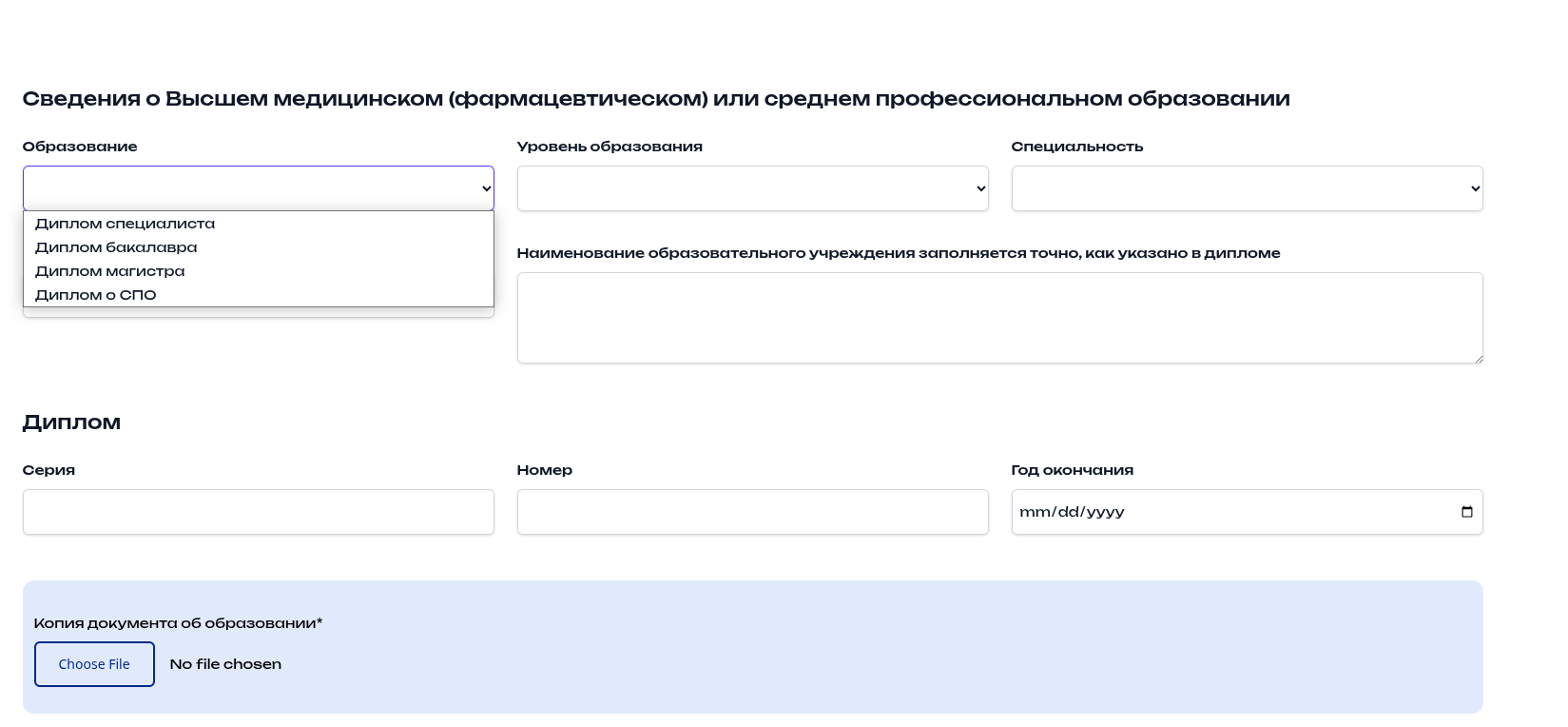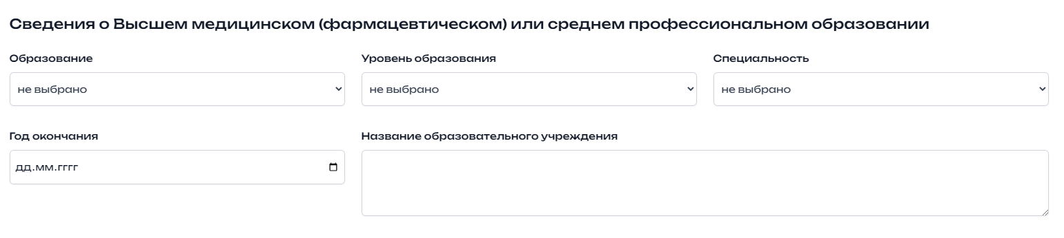 13. Изменение блока "Сведения о Высшем медицинском (фармацевтическом) или среднем профессиональном образовании" #13