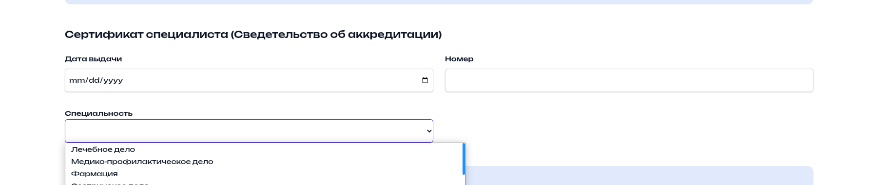 Добавить специальность