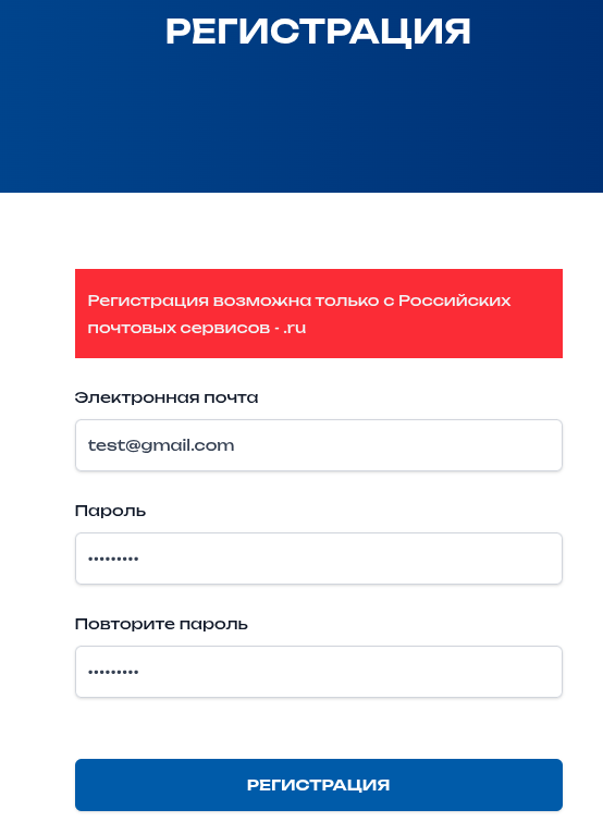 Теперь при попытке зар-ся через иностранный почтовый сервис, пользователь увидит ошибку