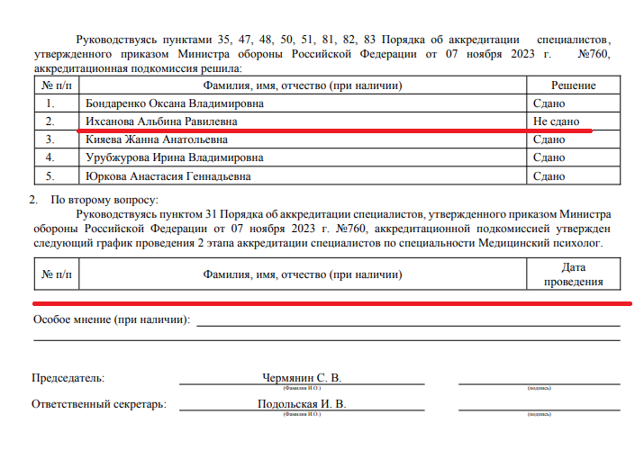 Прошу уменьшить интервал списка членов подкомиссий в печатной форме протоколов. (Рис. 1) Добавить «г.» (Рис. 2) В печатной форме протокола, в разделе 2 - по допуску к следующему этапу, по умолчанию выводится «Лечебное дело». Это неправильно. (Рис. 3) В печатных формах Первичной специализированной аккредитации (ПСА) указано 3 этапа (Рис. 4). Это неправильно. В ПСА всего два этапа. Прошу настроить. Убрать время в результатах печатной формы протокола (Рис. 5) Спасибо