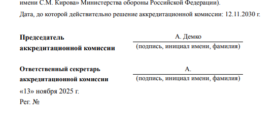 После чего в "Выписку из протокола заседания аккредитационной подкомиссии по итогам проведения первичной специализированной аккредитации специалиста" будут вписаны корректные Ф.И.О председателя и секретаря указанных направлений.
