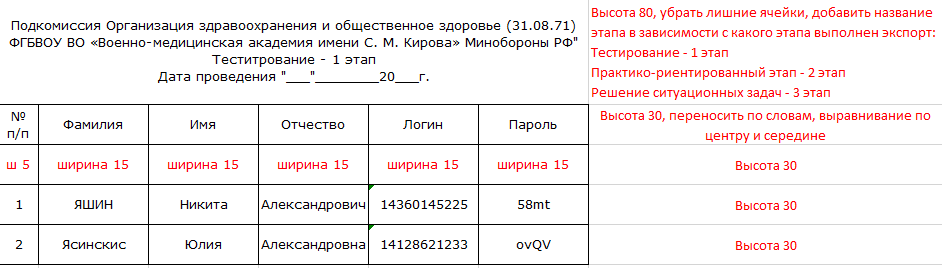 Подготовительный этап. Заявка 4to Подготовительный этап. Заявка 6Подготовительный этап. Заявка 6to Изменить назначение кнопки "Экспорт в Excel" на новую печатную форму логинов и паролей (приложение №5)шрифт veranda