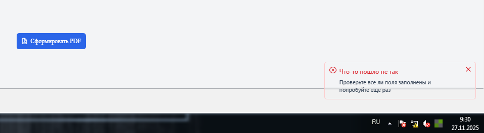 У Вас же в правом нижнем углу появилось окошко, в котором написано что не так) - "Проверьте все ли поля заполнены и попробуйте еще раз"